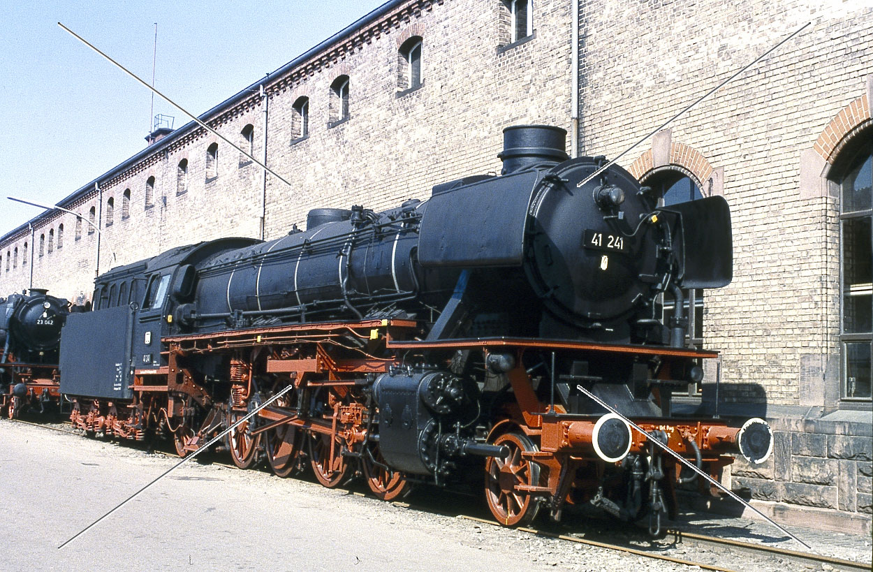 Das Bild zeigt die: Dampf-Güterzuglokomotive 41 241 der DB im AW Offenburg/Baden - 1984